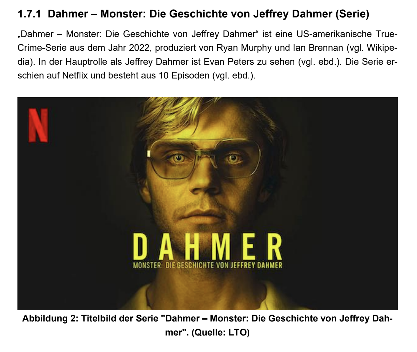Die vorliegende Masterarbeit untersucht die Romantisierung von Verbrechen am Beispiel der Netflix-Produktion „Dahmer – Monster: Die Geschichte von Jeffrey Dahmer“ und behandelt die Frage, inwiefern die Darstellungsweise in der besagten Produktion als strategische Marketingmaßnahme verstanden werden kann. Ausgangspunkt ist die Kritik, dass True-Crime-Formate Täterfiguren ästhetisieren, Empathie hervorrufen und dadurch ihre Verbrechen verharmlosen.